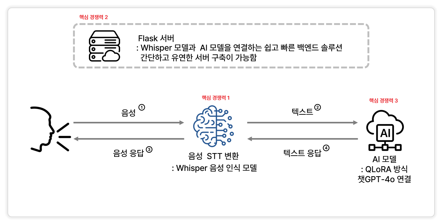 - Whisper과 Flask 모두 Python 기반 ⟶ 직관적인 성격으로, 개발과 보수가 쉬움